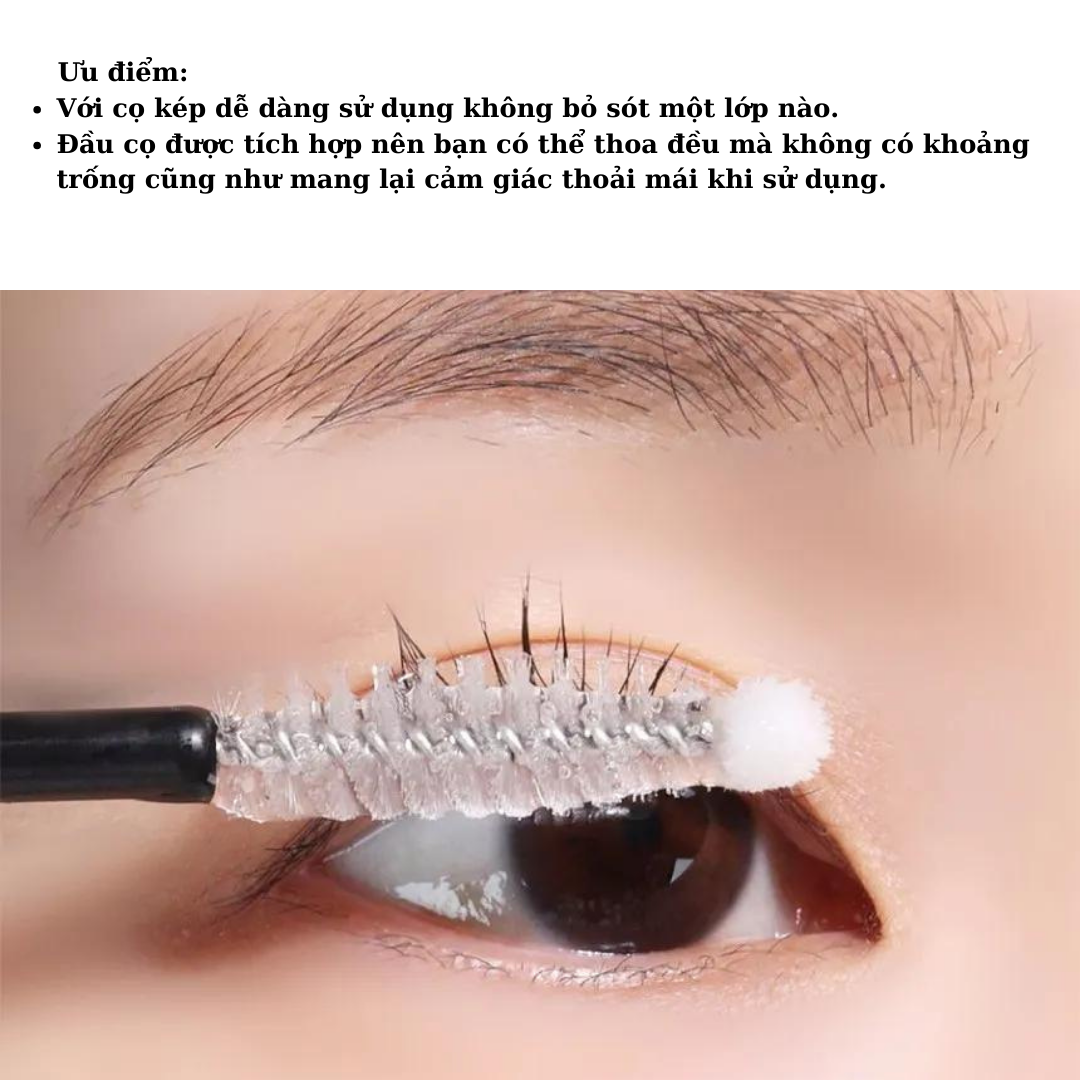 - Với đầu bóng tròn, cận thận thoa một lượng nhỏ vào phần dưới của lông mi và giữa các đường lông mày.