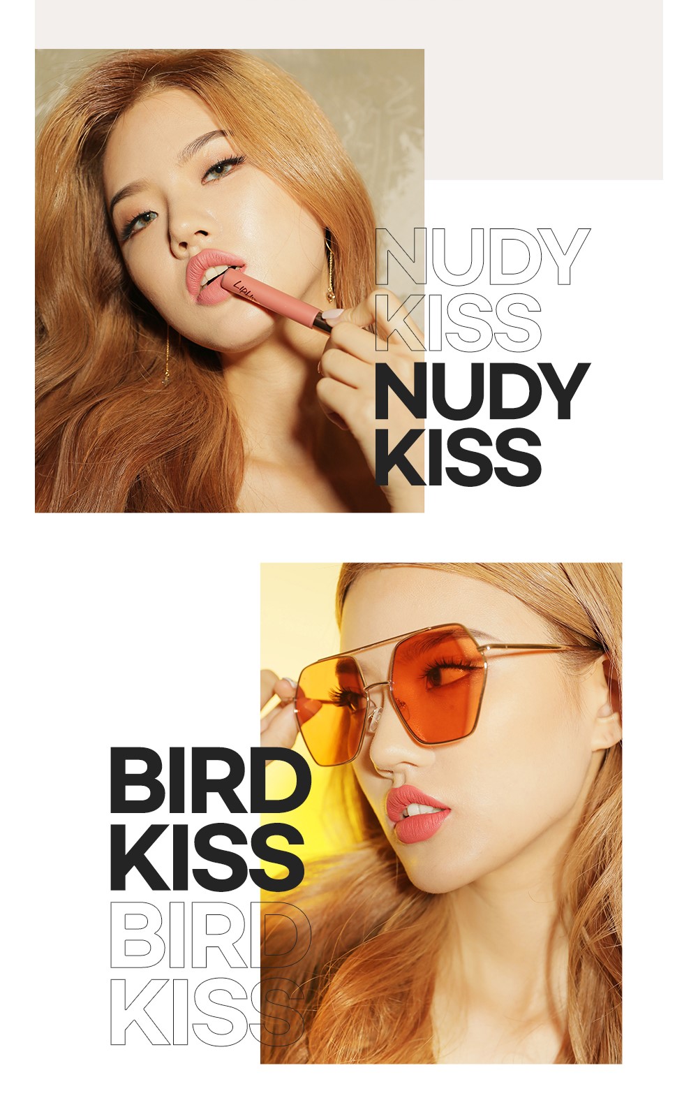 - KISS VER: Phiên bản này mang xu hướng ngọt ngào trẻ trung với những gam màu từ nhẹ nhàng đến năng động, phù hợp để dùng hàng ngày. KISS VER có tổng 5 màu. Nudy Kiss, First Kiss, Bird Kiss, France Kiss, Deep Kiss